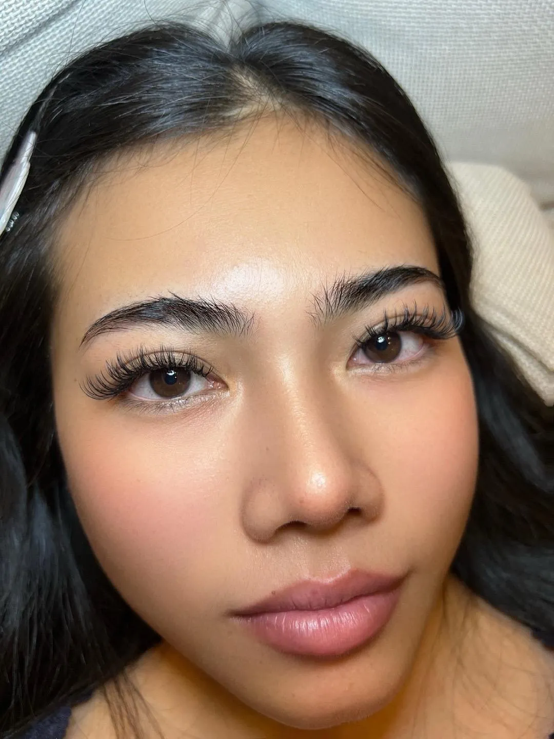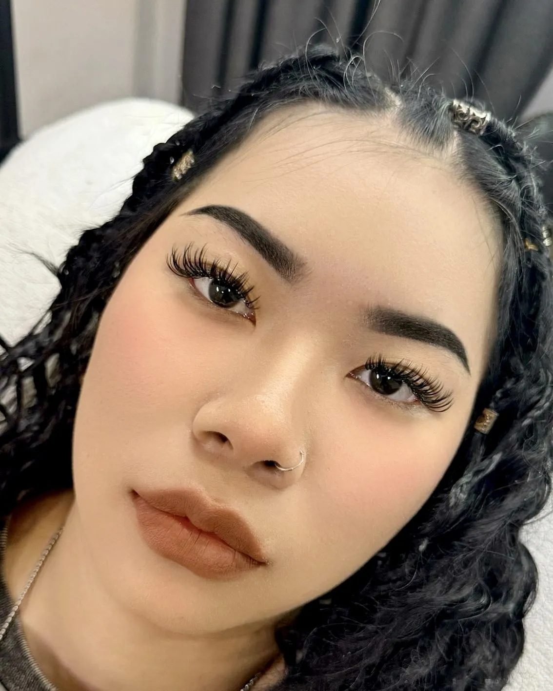 We use different curls to create a fuller, more dimensional look. This technique adds lift, giving the lashes a fluffy yet defined finish.